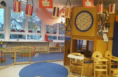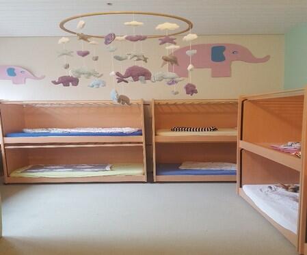 Unser Gruppenraum ist schön gestaltet, hell und bietet viele Möglichkeiten der Beschäftigung in verschiedenen Spielbereichen. Zu unserer Gruppe gehört auch ein eigener Schlafraum und Sanitärbereich. Wir verfügen über altersgerechte Spielmaterialien für unsere Krippenkinder.